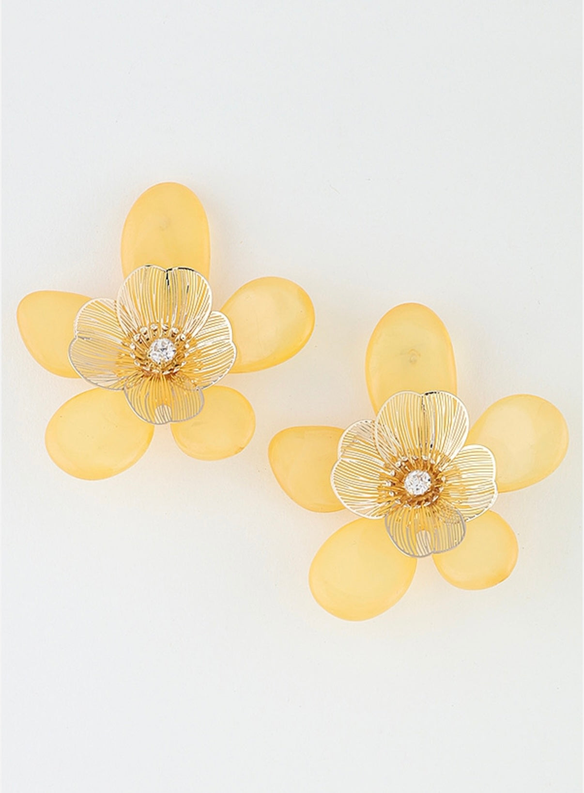 Yellow acrylic and gold-plated floral earrings.